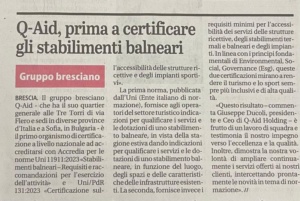 Oggi il Giornale di Brescia e il Bresciaoggi parlano di noi! Q-Aid è il primo organismo di certificazione in Italia ad ottenere l’accreditamento di Accredia per le norme UNI 11911:2023 e Uni/PdR 131:2023.